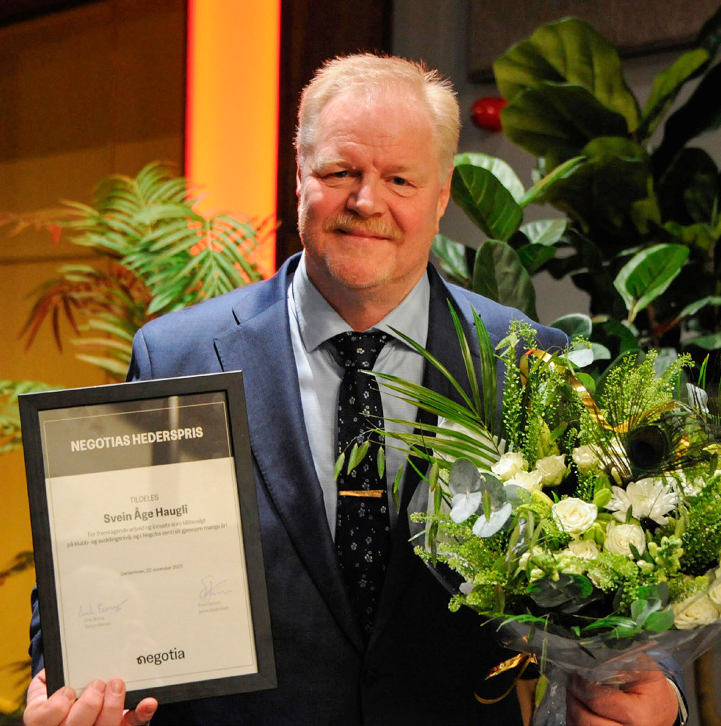 Under landsmøtets festmiddag ble Svein Åge Haugli tildelt den høythengende hedersprisen for sin store innsats for Negotia gjennom mange år.