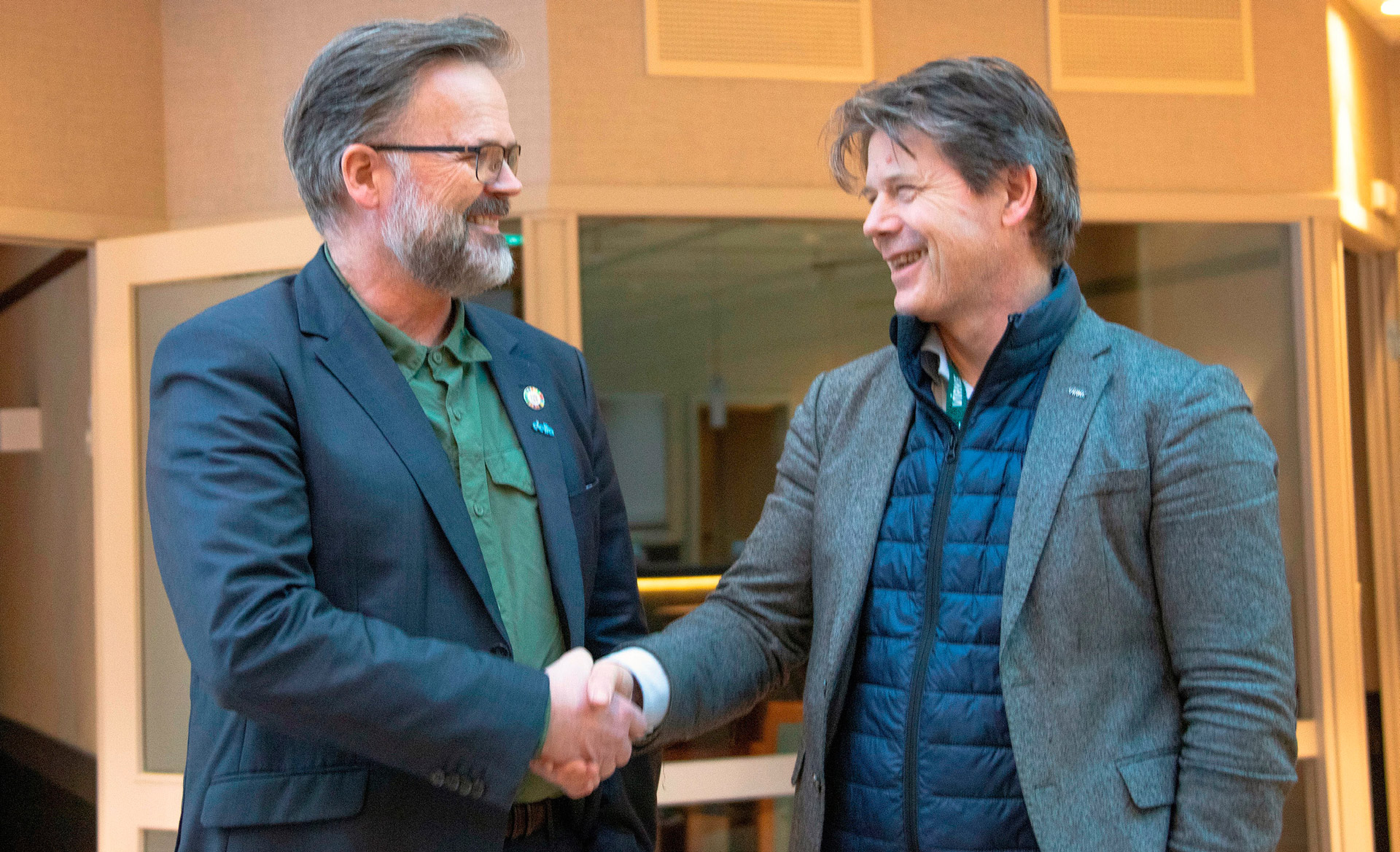 ENIGHET. Ny hovedavtale på plass. Eirik Bornø, leder for YS Privat (til venstre) og Bernt G. Apeland, adm. direktør for arbeidsgiverorganisasjonen Virke.